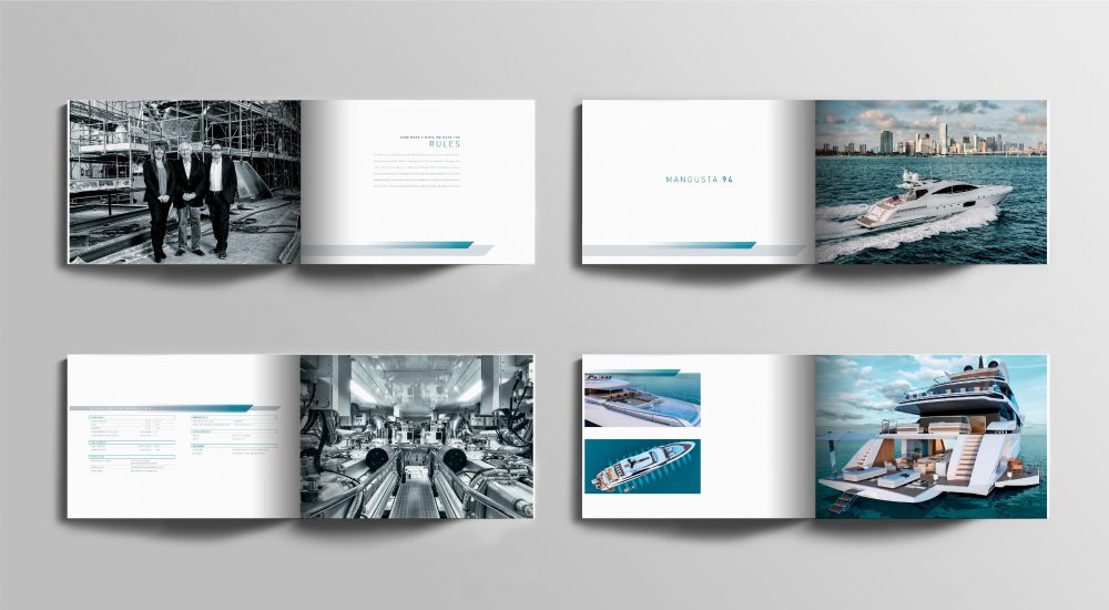 Mangusta yachts do not only represent the fulfillment of a dream, but the desire to dream itself. The sensation of extreme luxury comes in part from the graphics we developed, inspired by the dominant shape of a yacht’s prow. And also by the way the images are cropped and coloured.